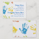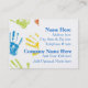 Children's Daycare Business Card -Customise for your own. Painted children's hands in blue, yellow, green & red.