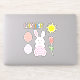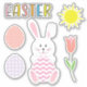 Adorable Children's Spring Set of 6 Stickers Featuring Easter Bunny Holding An Egg, Two Extra Eggs, A Flower, Yellow Sun & Fun Easter Typography.