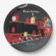 Children's personalised birthday party paper plates with train and chalkboard background. Matching birthday invitation https://www.zazzle.com/train_childrens_birthday_chalkboard_invitation-256590136487904830
