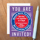 Bright colours and bold design. Child's 8th birthday party invitation card. 8 years old. 8th birthday party invitations.
