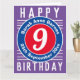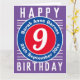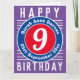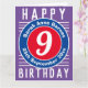 Age 9. Birthday card for a child who is nine years old. Bright colours and bold design. Child's 9th birthday card. 9 years old.