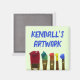 Fridge magnet to hold a son or daughter’s artwork. Personalise this little magnet for the fridge with a child’s name. Five paintbrushes, loaded with colourful gobs of paint, decorate the bottom of square magnets. Makes a fun little gift for a budding artist in the family. Printed grunge text in blue over a light green background makes this magnet perfect for boys or girls.