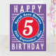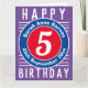 5th birthday card. Bright colours and bold design. Child's birthday card. 5 years old.