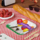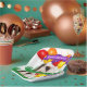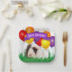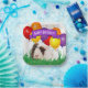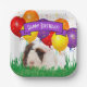 This cute brown and white guinea pig in grass with colourful party balloons in the background has a purple banner to highlight "Happy Birthday" text is the feature on this paper plate template design. Personalise the text field or click customise to select a typeface style, colour, and size you like.