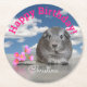 This paper coaster features a birthday celebration template design featuring a cute grey guinea pig with tiny pink flowers on a rock sitting under a partly cloudy sky. Personalise the text fields, remove the text or click customise to select a typeface style, colour, and size you like. If you like it, PIN it to easily find it later.