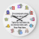 Childs first clock will make learning how to tell time fun! Customise with childs name, and/or a message of your own. Brightly and cheerfully decorated with twelve different really cute elephants, and the following message on the face of the clock: