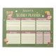A cute green kid's weekly planner with a bear and woodland theme . Personalised it with the child's name .The days of the week are written in English , but you can replace them in a different language like French , Spanish or German . Simply use the provided template . It is a great way to teach children the days of the week and to stay organised .