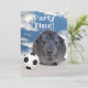 A cute grey guinea pig with a black and white soccer ball is on the front and back of the child's birthday party invitation. Personalise the text fields for the front and back using the template fields, remove text or click customise to select a font style, colour, and size you like. If you like it but don't need it now, follow the TheAspenStand store to easily find the invitation later.