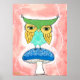 Sweet, Cute, Fantastical, Fantasy, Imaginative Cute Night Owl standing atop a blue mushroom. An original illustration by Australian artist PIp Gerard.