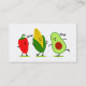 Fun chile or chilli pepper with corn and avocado characters on this business card for Mexican or Southwestern food or cuisine personal chef, caterer or catering business, cooking classes and more.
