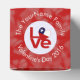 The Chilean LOVE FLAG. Like the others in Auntie Shoe's The LOVE Series, the word LOVE is featured in red letters inside a white, fractal-style circle. The circle sits on a red, fractal-style background. Perfect for Valentine's Day or any special time.