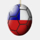 Flag of Chile embossed across a soccer ball on a two-sided ceramic ornament.