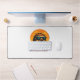 LOVE this desk mat! It's large! It fits across my desk. No need for a small mouse pad now! Color and print are excellent. Quality seems to be excellent too. Delivery was about 3 days sooner than expected. I think this is one of my favorite Zazzle products! Excellent. The color is vibrant and true to what I expected.