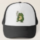 This trucker hat features a funny cartoon illustration of a chilled-out frog smoking with a relaxed, laid-back expression. The unique design adds a quirky and humorous touch, making it perfect for streetwear lovers and fans of bold cartoon graphics.