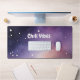 The dreamy galaxy background blends deep purples and soft hues, evoking a sense of quiet focus and imagination, while the simple “Chill Vibes” text reinforces a relaxed, positive mindset. The scattered stars add depth without feeling busy, making the design visually soothing yet expressive. It’s more than just a desk accessory—it’s a mood-setter that encourages comfort, balance, and effortless productivity.