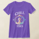Woman meditating graphic with text, "Chill Vibes" relaxing, enlightened feeling.