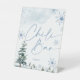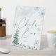 Chilli bar sign. Blue winter wonderland baby shower, and bridal shower sign with pine trees and snowflakes.