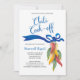 A whimsical chilli pepper chilli cook off Birthday party invitation features a side border of my original watercolor art. At the top are the words "Chilli Cook-Off" in a hand lettered style blue script font. Personalise with your Birthday party details in a traditional sans serif lettering. Invitations reverse to fun blue polka dots. To see matching designs visit my online store at www.zazzle.com/vginvites