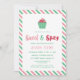 Sugary cute invite for a sweet & spicy themed bridal shower with pink and green diagonal stripes, cute fonts, and a chilli pepper adorned cupcake with pink frosting.