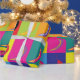 Modern art pattern of chilli pepper graphic illustrations on bold bright squares gift wrapping paper