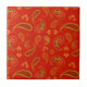 Chilli Pepper Red and Lime Green Paisley Pattern Tile