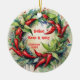 A fun personalised Chilli Peppers Christmas Wreath Ornament. Add the name and year of your choice.