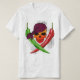 Chilli Pirate :: Cool skull and crossbones design with a chilli pepper twist. Beautiful rich chilli pepper colours set this cool shirt design off while a grungy halftone pattern sets the background. This is one very hot chilli pepper t-shirt design for any pepper fan.