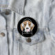 The design features an illustration of a relaxing beagle wearing headphones and blowing pink bubblegum. With your personalised favourite background colour, it makes a cute, funny, and unique pinback button for dog lovers.