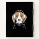 The design features an illustration of a relaxing beagle wearing headphones and blowing pink bubblegum. With your personalised text and favourite background colour, it makes a cute, funny, and unique spiral notebook for school or home office.