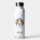 The design features an illustration of a relaxing beagle wearing headphones and blowing pink bubblegum. With your personalised text and favourite background colour, it makes a cute, funny, and unique water bottle.
