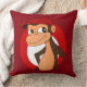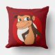 Pillow with an illustration of a cute happy chimpanzee with red baseball cap, illustration by MaxiHarmony