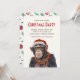 Chimpanzee Santa Hat Poinsettias Christmas Party Invitation