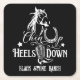 Chin up heels down cowgirl horse lover riding square paper coaster