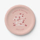 A unique kanji writing of the word 'ai' ('love') constructed from oriental red cherry blossoms / sakura flowers with white branches on a soft pink background wedding shower / engagement party paper plate.
