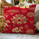 Chinese Asian Oriental Red Gold Lotus Pattern Cushion