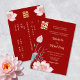 This floral wedding invitation features a watercolor painting of a lotus flower and a double happiness symbol in gold on a red background. Please check out the variation in rose gold to give this traditional Chinese wedding invitation a contemporary spin. 金箔婚礼请柬