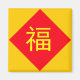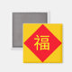 This magnet with yellow Chinese character 福 (fu)(luck) on red square on bright yellow background meaning good luck is a nice gift for Chinese lunar new year holiday or special Asian events.