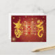 Chinese Dragon and Phoenix Mythical Animals Symbol of Union and Marriage with Calligraphy Text of Double Happiness on a Red Auspicious Sparkly Background Festive Illustration Drawing Postcard