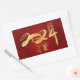 Chinese firecrackers as background for a large golden 2024 with greeting in Chinese inside the number zero + "HAPPY CHINESE NEW YEAR" + "Year of the Dragon" and golden paper-cut (printed image) of a dragon. Design on horizontal rectangullar sticker. Matching greeting card, postcard... Perfect for Chinese New Year of the Dragon 2024. ---------------- "The Dragon (simplified Chinese: 龙; traditional Chinese: 龍) is one of the 12-year cycle of animals which appear in the Chinese zodiac related to the Chinese calendar. The Year of the Dragon is associated with the Earthly Branch symbol 辰, pronounced chen. It has been proposed by one academic researcher that the Earthly Branch character may have been associated with scorpions; it may have symbolised the star Antares." People born within these date ranges can be said to have been born in the "Year of the Dragon", while also bearing the following elemental sign: 22 January 1928 - 9 February 1929 = Earth Dragon,