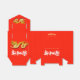 Large wishes "Happy New Year" in Chinese (white modern calligraphy) and in English, Dragon golden paper-cut (image printed - model n°1). Design on tent favour box with red background + Family name and message to customise. You can easily change text (font, colour, size and position) and background colour by clicking the customise button. Available in other style: gable, cube and take-out boxes and with other Dragon paper-cuts. Perfect for Chinese New Year of The Dragon 2024.