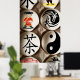 Poster with eggs decorated with Chinese characters and designs.
