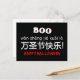 This postcard featuring English and Mandarin Chinese bilingual text with white boo, red eyeballs, white Chinese characters with pinyin and red happy Halloween English words is a nice choice to send your Halloween holiday greeting in English and Chinese, good for personal or business use.