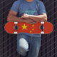 This design features the national flag of the People's Republic of China (PRC), which was first adopted when the modern state was founded in 1949. It is a solid flag with four small stars and one bigger star in the upper left corner. All of the stars are yellow, against a red background. The flag of the Communist Party of China is similar but replaces all five stars with a hammer and sickle.