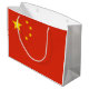 This design features the national flag of the People's Republic of China (PRC), which was first adopted when the modern state was founded in 1949. It is a solid flag with four small stars and one bigger star in the upper left corner. All of the stars are yellow, against a red background. The flag of the Communist Party of China is similar but replaces all five stars with a hammer and sickle.
