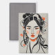 Chinese girl drawn with black ink pen, geisha magnet