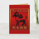 Black lucky Goat into a gold frame with red silk (digital effect) tapestry as background and gold lettering YEAR OF THE GOAT and greeting in Chines "Happy New Year" + red background. Design on Greeting card. You can easily add and change background color (inside the card) by clicking the customize button. Matching postcard, invitation, craft products, home products, clothing and more... Perfect for Chinese New Year of the Goat.-------------- The Goat (Chinese: 羊; pinyin: yáng) is the eighth sign of the 12-year cycle of animals that appear in the Chinese zodiac related to the Chinese calendar. The sign is also referred to as the Ram or Sheep sign, since the Chinese word yáng is more accurately translated as Caprinae, a taxonomic subfamily which includes both sheep and goats. (...) People born within these date ranges can be said to have been born in the "Year of the Goat", while also bearing the following elemental sign: