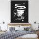 This canvas showcases an abstract, expressive, irregular and wavy white line in a vertical format with a Chinese graphics appearance, over the flat black background.