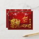Chinese lanterns with fireworks as background with golden paper-cut of an cute ox + large golden 2021, golden Year of the Ox, greeting "Happy New Year" in Chinese and yellow Ox ideogram. Design on horizontal basic postcard with dark red background + same background in back. Matching greeting card, holiday postcard, invitation, craft supplies, party supplies and more... Perfect for a joyful Chinese New Year of the Ox 2021.