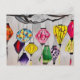 Chinese lanterns watercolor art postcard