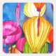A colourful watercolour painting of Asian Vietnamese / Chinese lanterns painted by visual artist Sacha Grossel. These colourful and bright lanterns of pink, purple and orange are against a bright blue background.
